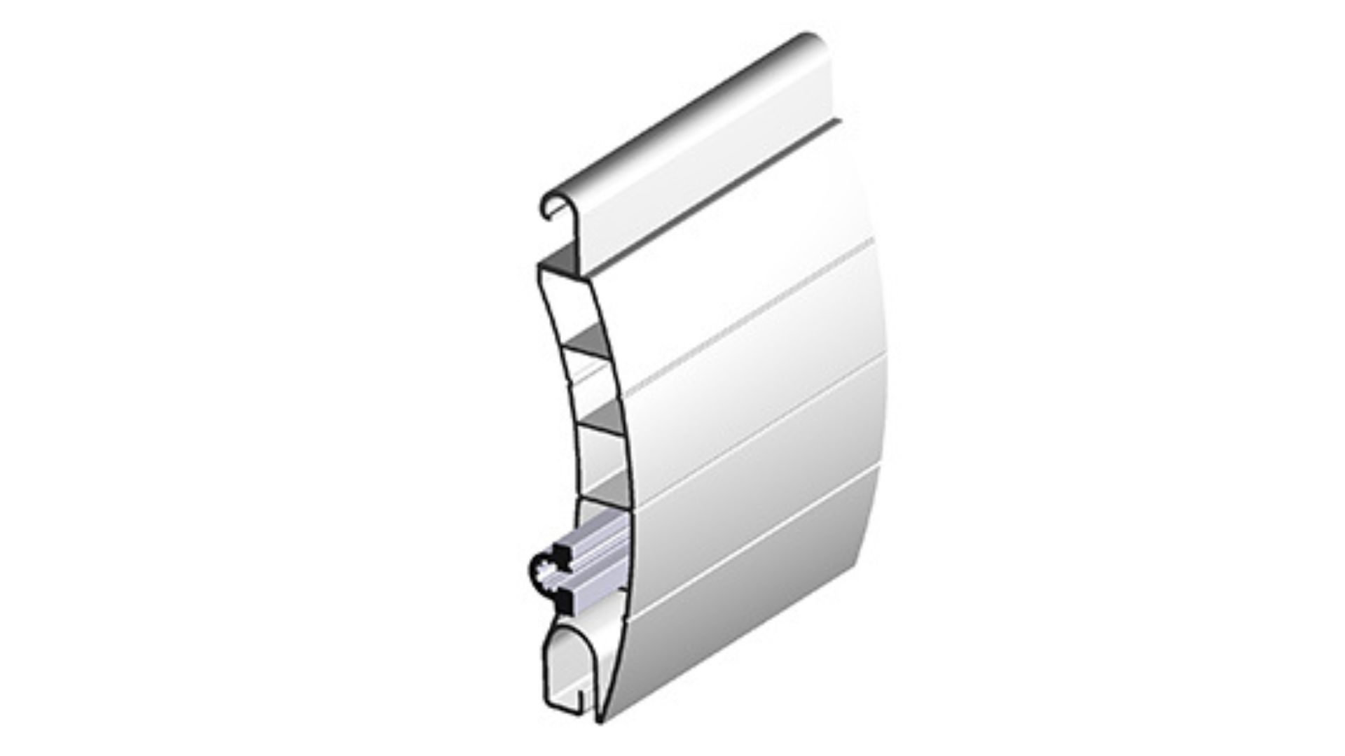 Interface entre la première lame d’un tablier PVC et les verrous. Il confère à une lame PVC la résistance d’accroche d’une lame Alu et répartit les efforts des verrous sur toute la largeur du tablier. Durée de vie du tablier fortement augmentée.
